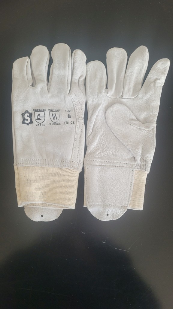 DESCRIPTION : Paume et dos en cuir fleur de caprin. Poignet lastex avec protège-artère.